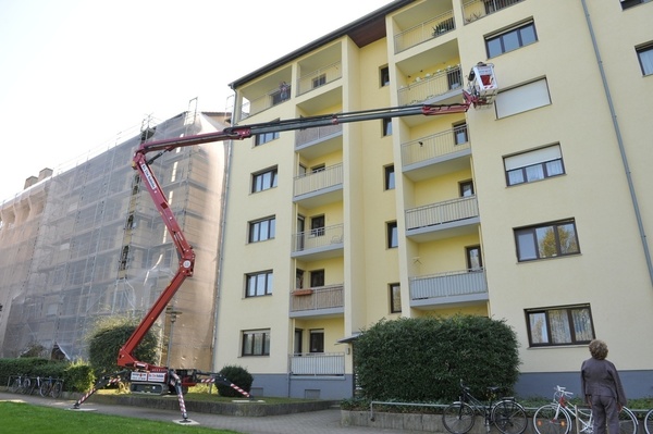 Um größtmögliche Flexibilität bei schwierigen räumlichen Verhältnissen zu gewährleisten, setzen wir kompakte Geräte mit einer Höhe von unter 200cm und einer Durchfahrtsbreite von nur 85cm ein. Des Weiteren sind die Hubsteigerfahrzeuge geländegängig.