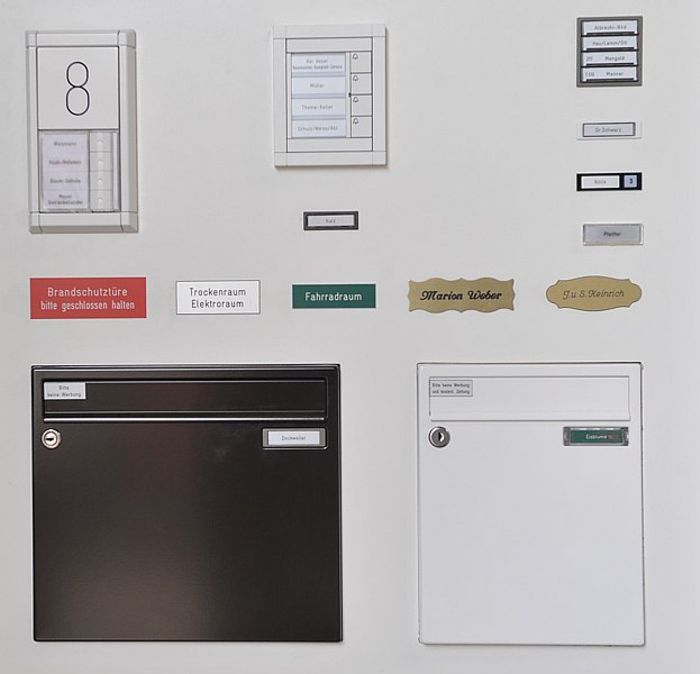 Die Klingel- und Briefkastenanlage ist die Visitenkarte eines Hauses. Gut lesbare und einheitlich aussehende Namensschilder wirken gepflegt und erleichtern das Finden von Bewohnern.