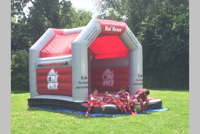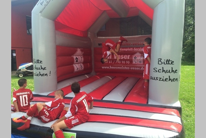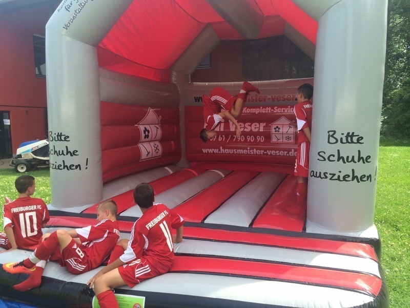 Die Kids beim Jugendturnier des Freiburger FC im Dietenbachgelände am 19. Und 20. Juli 2014 hatten wie man sieht jede Menge Spaß mit unserer Hüpfburg.